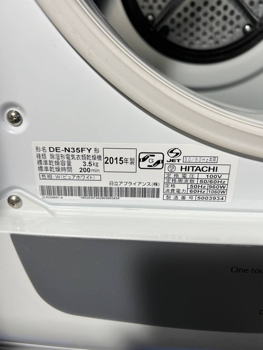 東京都町田市のお客様より HITACHI 日立 3.5kg 衣類乾燥機 DE-N35FY 2015年製 自立スタンド ※凹みありをお買取させて頂きました!