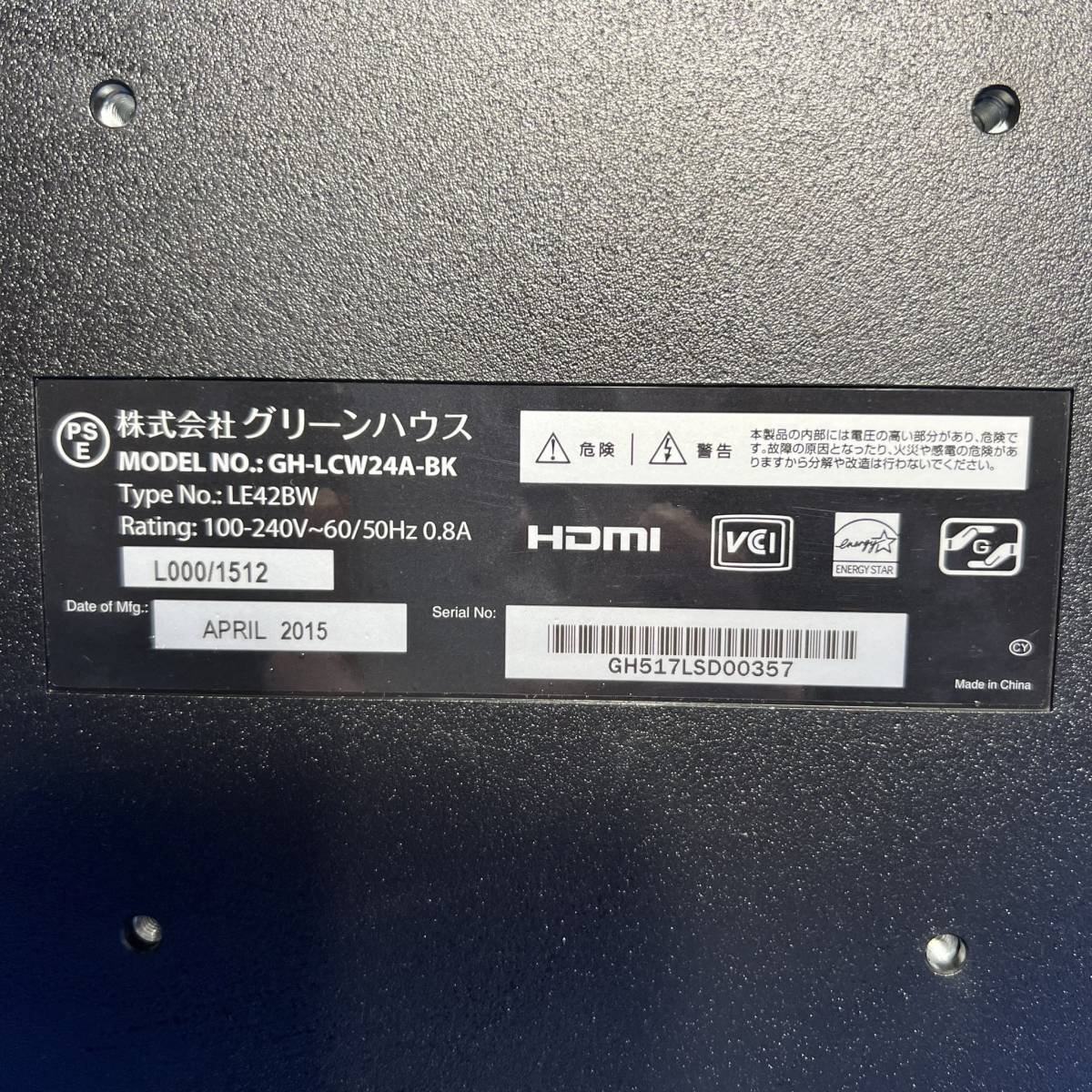 千葉県千葉市花見川区のお客様より GREEN HOUSE グリーンハウス 23.6型液晶モニタ GH-LCW24A-BK 2015年 ※リモコン、説明書なしをお買取させて頂きました!