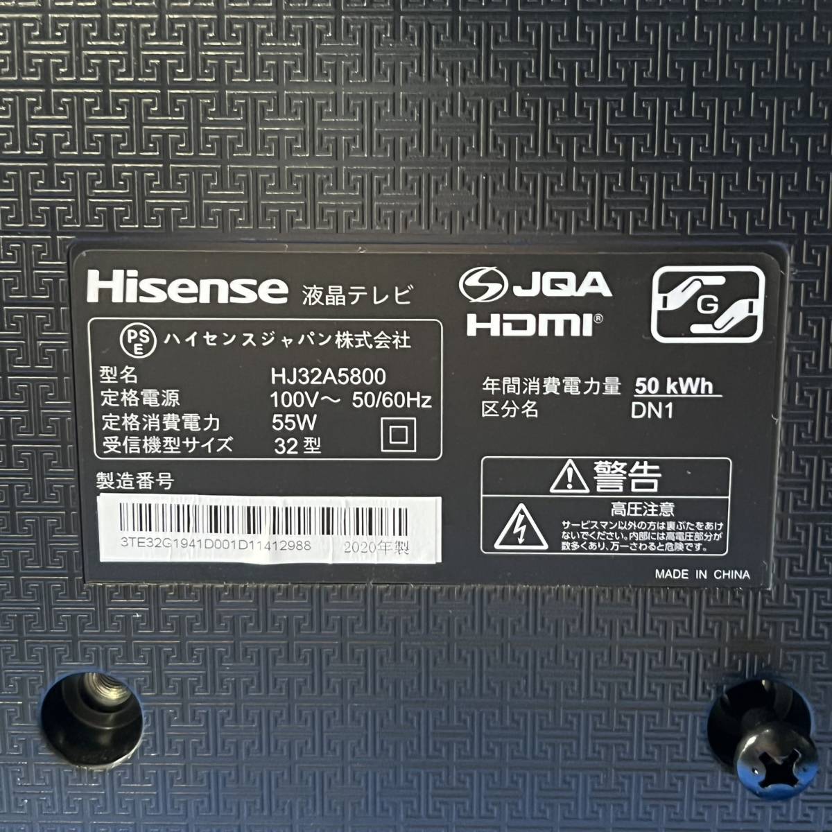 千葉県流山市のお客様より 2020年製 32型 ハイビジョン液晶テレビ ハイセンス HJ32A5800 Hisense ※B-CASカード、リモコンなしをお買取させて頂きました!